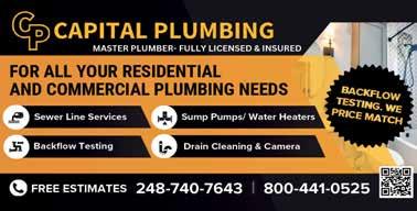 •SewerCamera •WaterHeaters •SumpPumps •BackflowTesting 248-542-8022