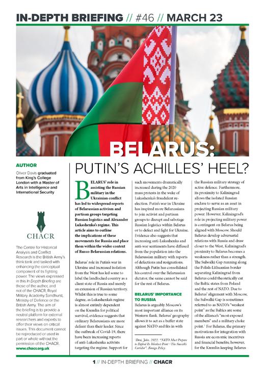 The views expressed in this Digest are not those of the British Army or UK Government. This document cannot be reproduced or used in part or whole without the permission of the CHACR. www.chacr.org.uk