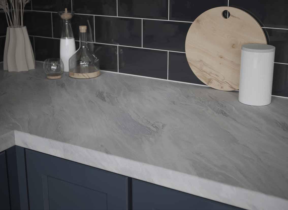 Finished with a Matt texture for a smooth, dressed stone feel to the touch. The postformed finish on this worktop creates a neat, tightly curved edge.