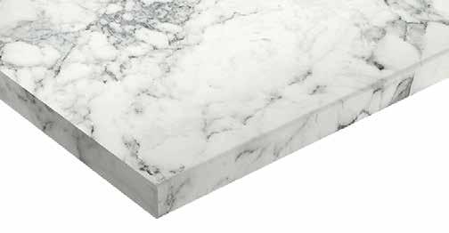 Marmor Hell worktops are available in 3m lengths and 38mm thickness, postformed finish with a tightly curved edge and an Ultramatt texture for a soft matt appearance and coarse feel to touch creating a dressed stone effect.