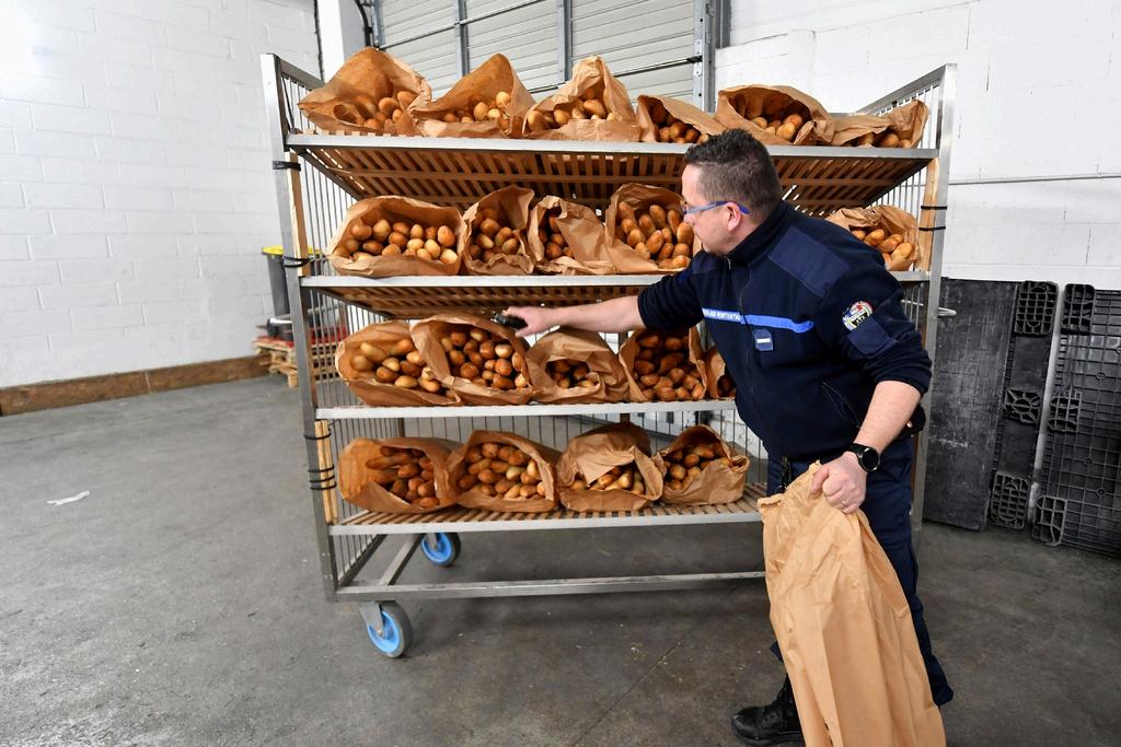 Un détenu prépare des baguettes dans une boulangerie installée au Centre de détention de Châteaudun, 8/01/2025, Eure-et-Loir, AFP, J.F. Monier.
