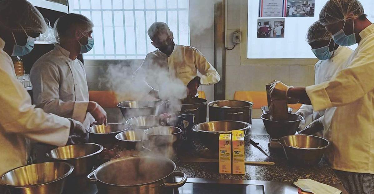 Les six détenus riomois ont été accompagnés durant quelques heures en cuisine par le chef Michel Portos, Franck Boileau.