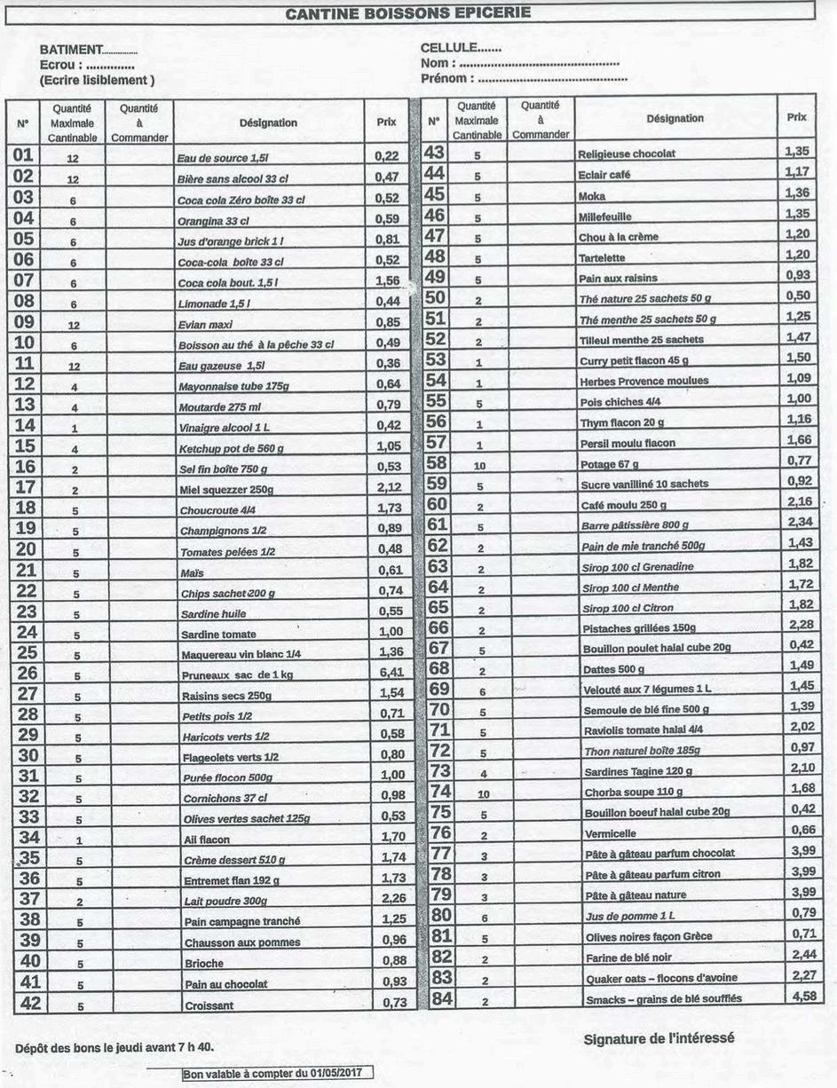 L’ALIMENTATION EN PRISON
