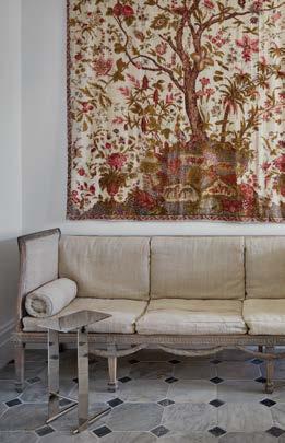 Certain expectations come with the interiors of a 200-year-old Greek Revival house in Southport, Connecticut—most likely crystal chandeliers, gilded mirrors, and a museum-level amount of statuary on perilously thin pedestals. For designer Billy Cotton and his longtime client, the goal was something altogether di erent: a family home full of spaces that embraced color and clarity of purpose, with thoughtful, deliberate choices at every turn.