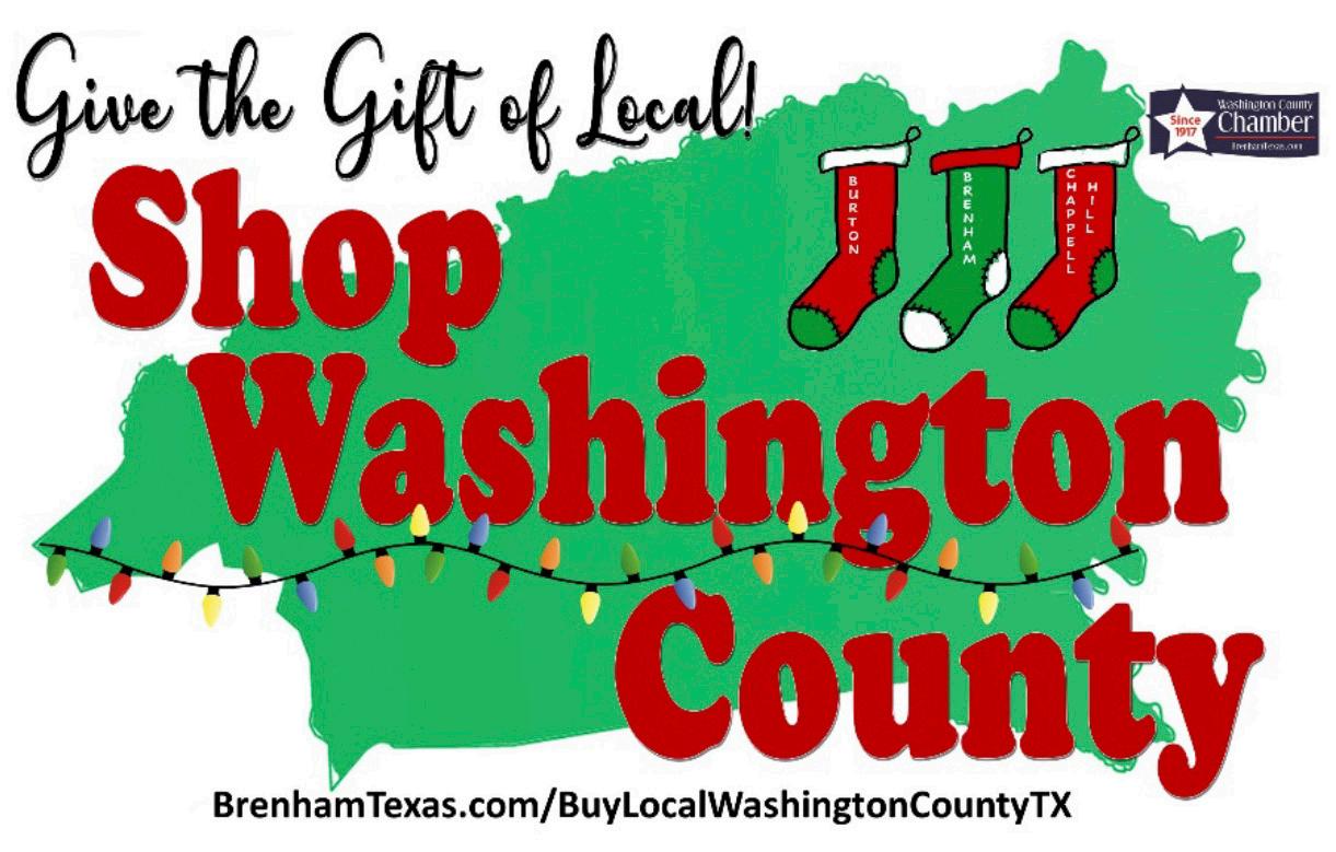 FOR LOCAL GIFT SHOPPING BrenhamTexas.com/BuyLocalWashingtonCountyTX