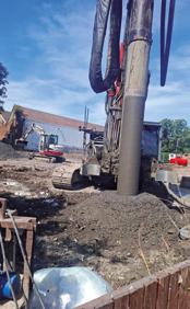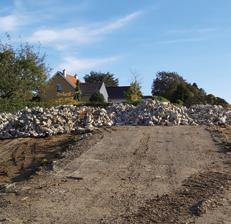 auf mehrere massive Findlinge von zwei bis drei Kubikmetern Größe. Kurzerhand wurden diese Steine sowie das Abrissmaterial nachhaltig vor Ort zerkleinert und im Bau wiederverwertet.