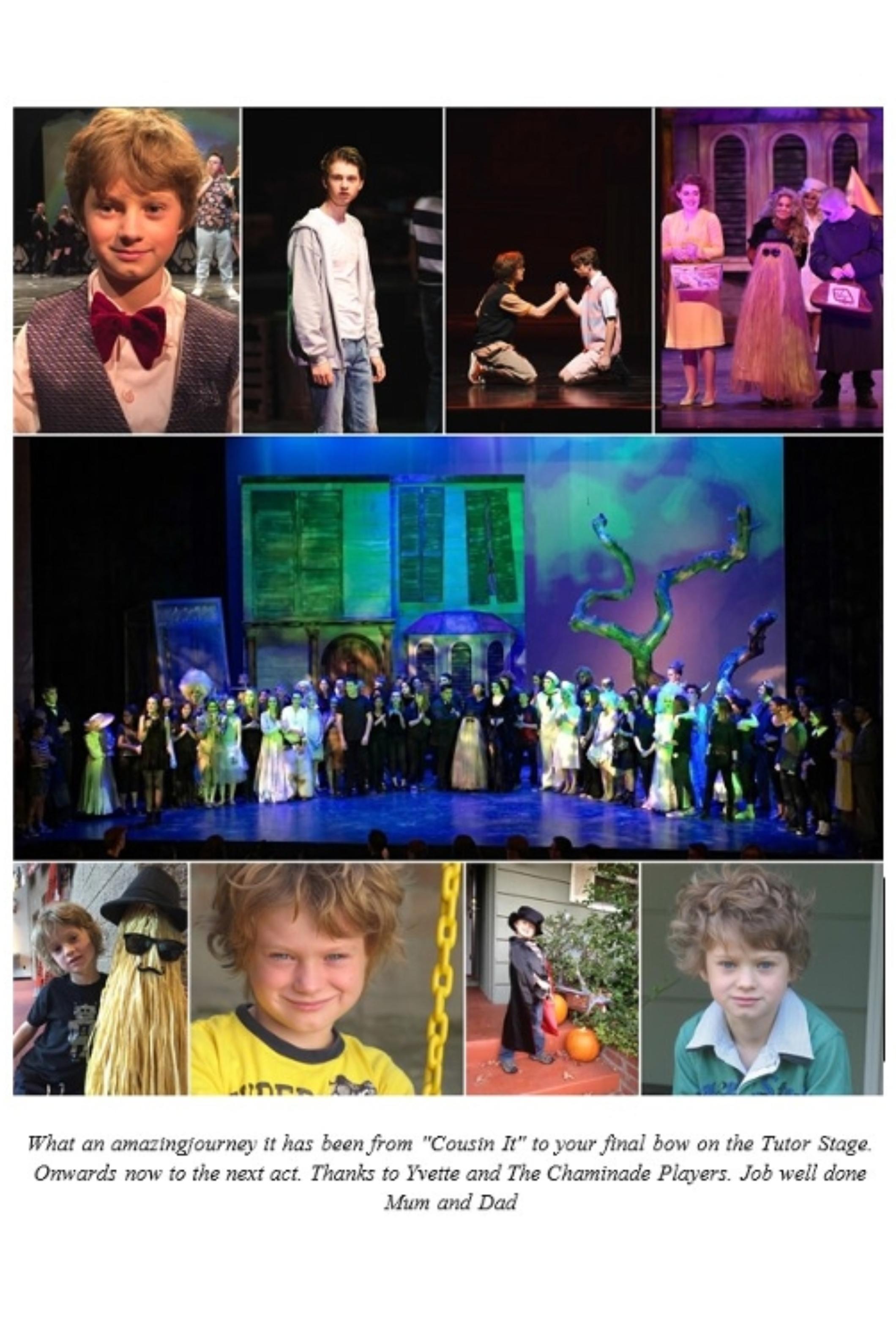 Gus Guerra, a 2nd grader at St. Mel, is thrilled to return for his second Chaminade play! He’s grateful to Mrs. Bishop for the role, his family and St. Mel community for their support, the fun high school students who’ve been so kind—and, of course, the steady stream of snacks and show‑day meals he loves!