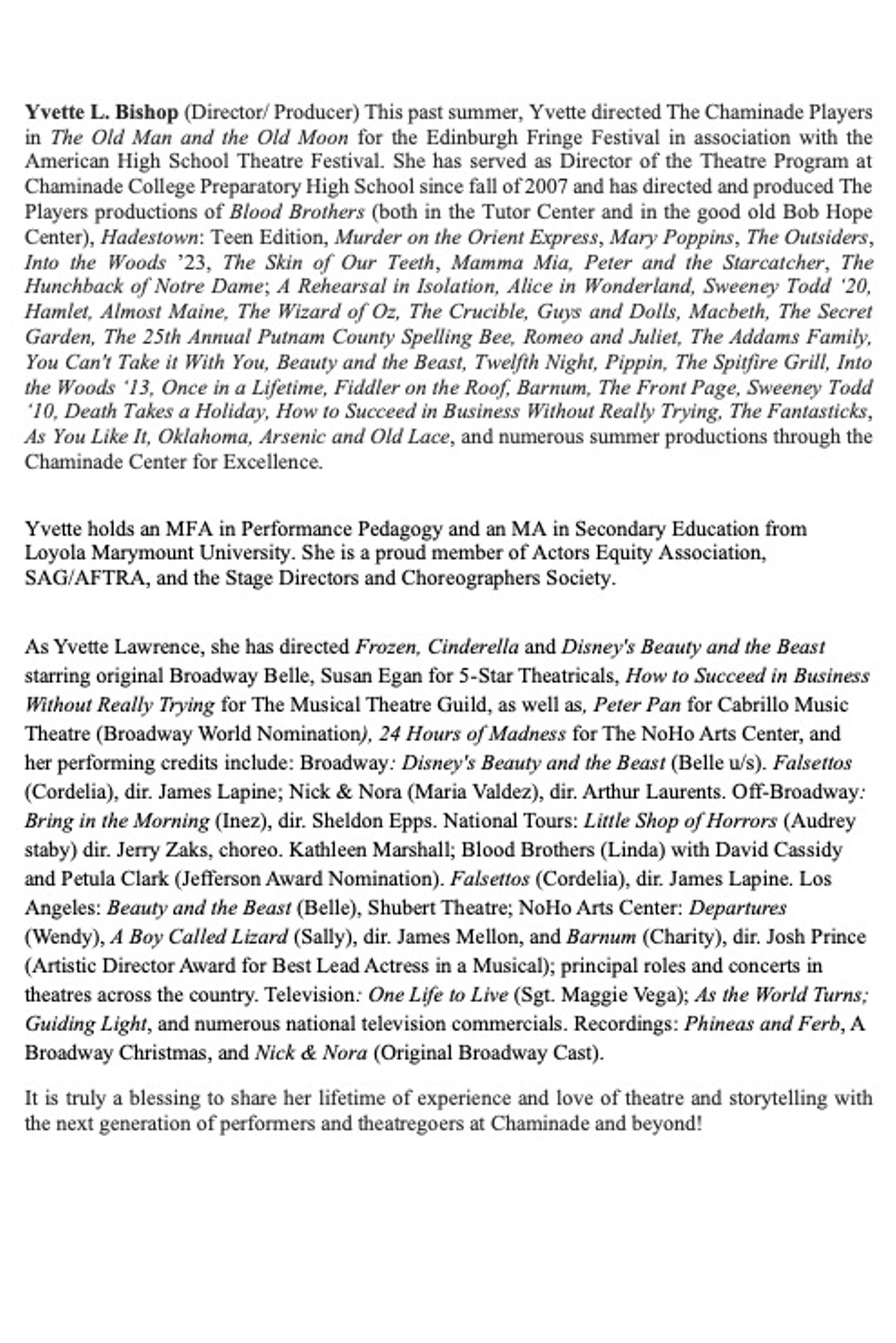 Yvette Lawrence Bishop Director of Theatre Program