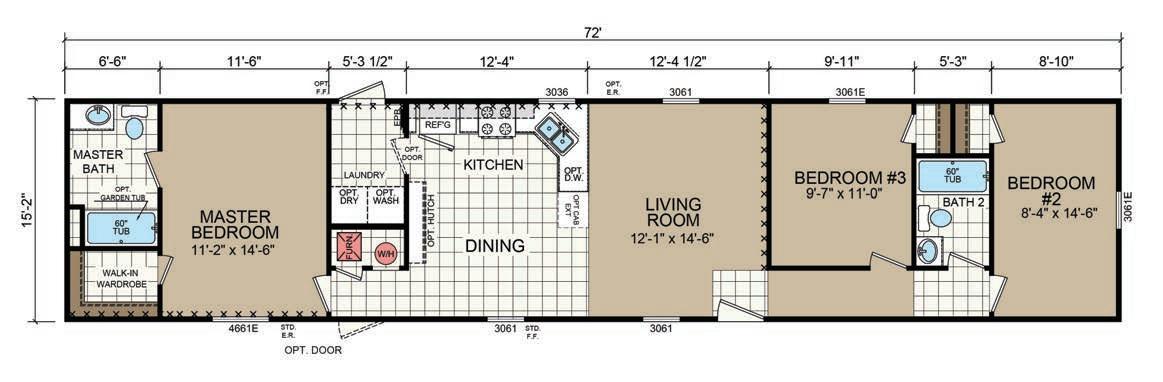 16’ x 72’ | 3 bed-2 bath | 1031 sq.ft.