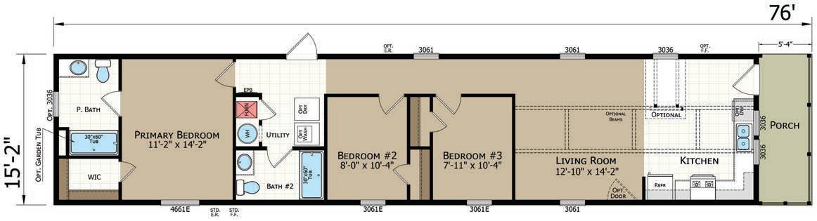16’ x 76’ | 3 bed-2 bath | 1152 sq.ft.