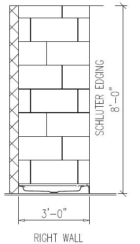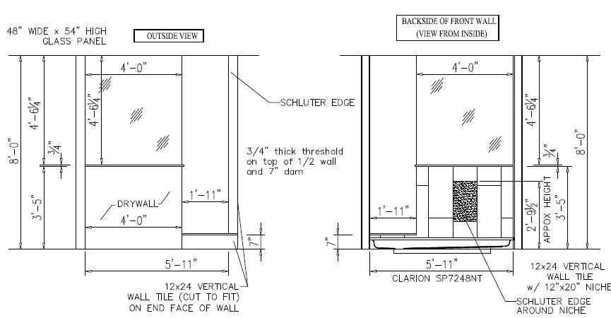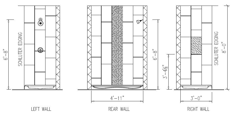 Iron Craft 12x24 (Vertical) Wall Tile (Staggered 33%) w/ 12x20 or 20x12 Niche (Hatched to Distinguished location) 12” Wide Accent Tile (Vertical) Random Pattern 1/16” Grout Space, Schluter Trim on Sides