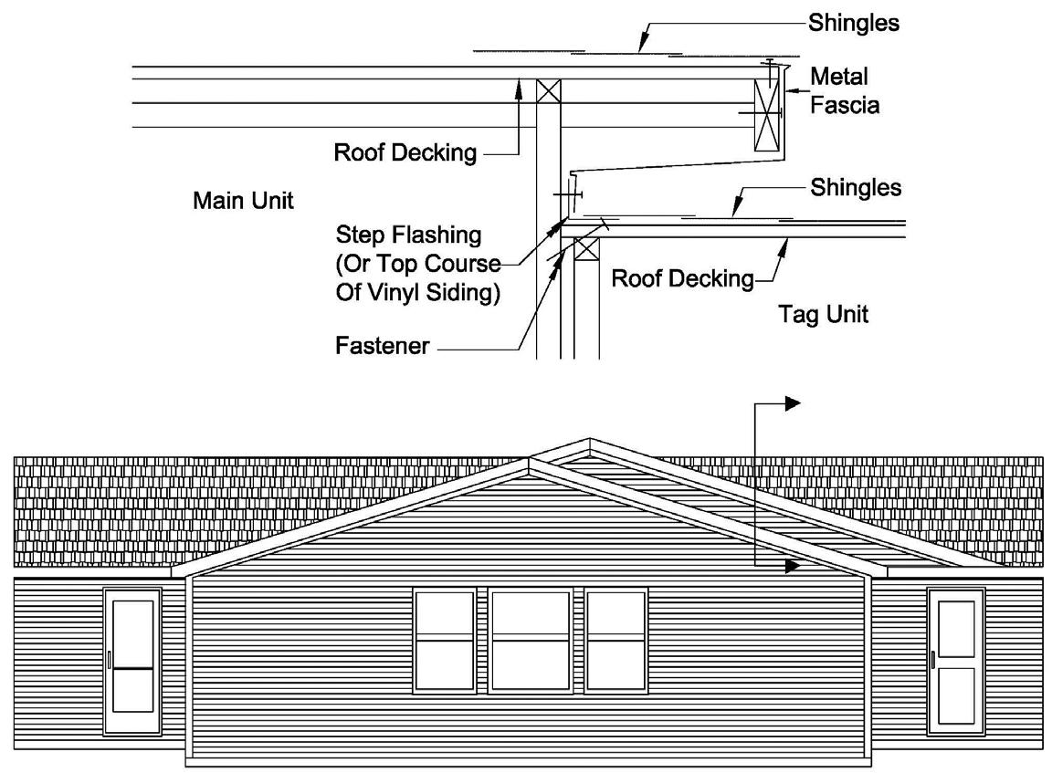 • A dormer roof can be installed on the home to match the pitch of the additions’s roof. The shingles below the dormer must be removed and the dormer must be vented properly. The dormer weight shall be no more than 5 psf and distributed uniformly over the roof trusses of the home. Connections may be made to attach the dormer to the home, but not be used to support the roofs loads of the addition. The dormer shall be shingled, flashed and sealed properly to prevent leaks (follow shingle manufacturer’s instructions and ARMA guidelines for shingle valley applications). The manufacturer is providing the above information as an accommodation only and without consideration. Accordingly, by this letter the manufacturer extends no warranties or representation either expressed or implied with regard to the recommendations here-in.