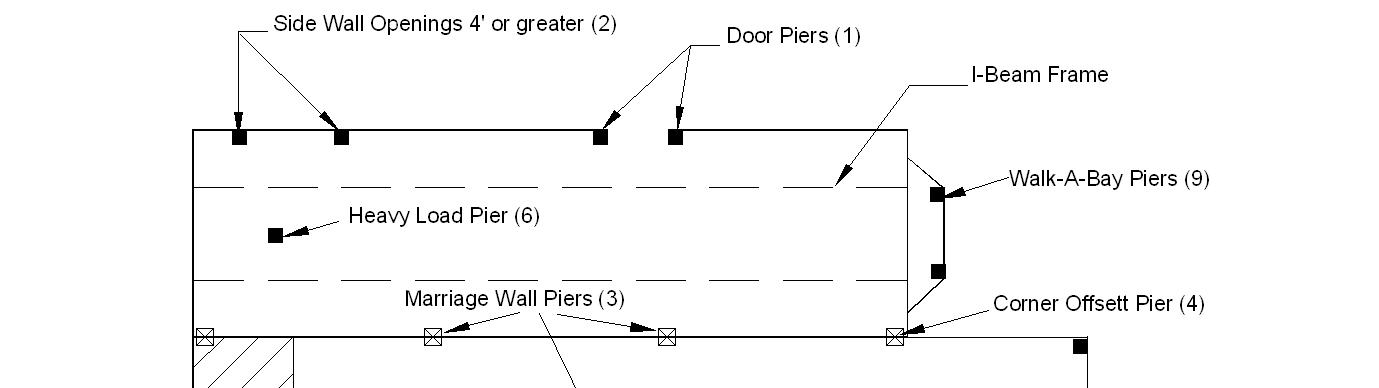 PIER. That portion of the support system between the footing and the manufactured home, exclusive of shims. Types of piers include, but are not limited to: (1) manufactured steel stands; (2) pressure-treated wood; (3) manufactured concrete stands; (4) concrete blocks; and (5) portions of foundation walls.