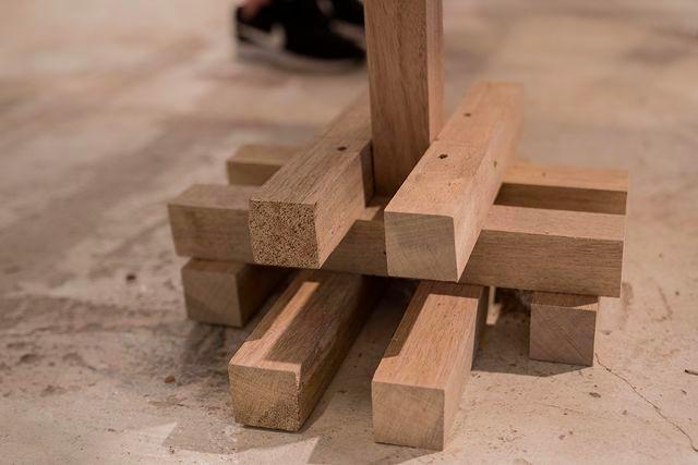 This installation is built with a specific square 30x30cm thermo-clay brick which can be produced in an extruded way and cut in a certain thickness. The method of making is quite efficient for a temporary project, and the discarded part can be part of the flooring material.