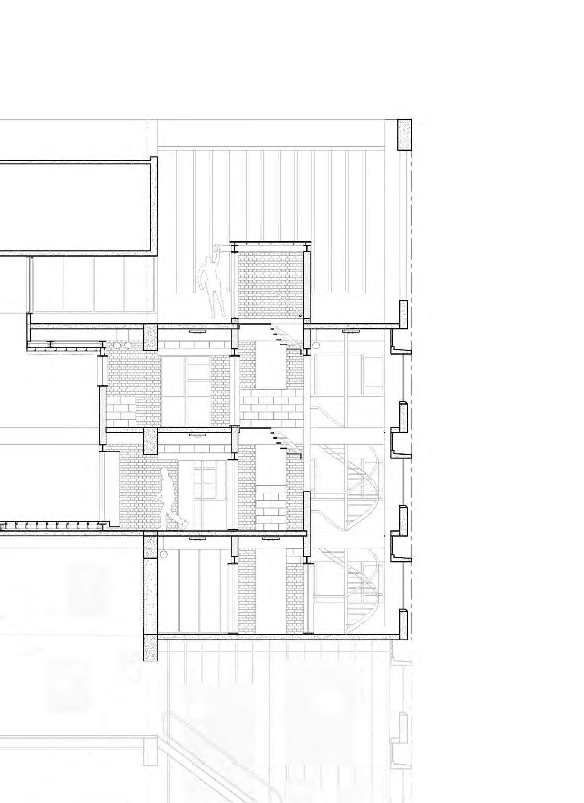 Clay bricks respond to the roof of local buildings, and the overall form is quite polite to the historical buildings.