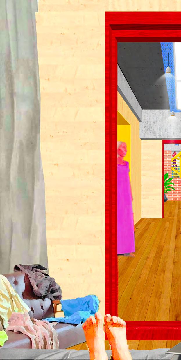 use it show it contrast it dysfunctional plan to live in and exhibit it contrast the raw concrete unfinished walls domestic living space