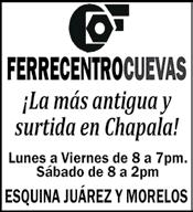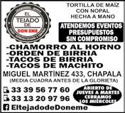 TORTILLERÍA TEJEDA.- Jesús García 52-A San Antonio Tlayacapan, Tel. 376 766 5309; Chapala, Ramos Millán No. 52, Chapala: López Cotilla 353. Cel. 3314453860, Servicio a domicilio.