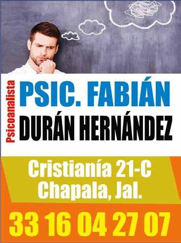 PSIC. FABIÁN DURÁN HERNÁNDEZ.- Psicoanalis ta Cristianía 21-C, Chapala Tel. 3316042707.