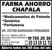 FARMACIA CHAPALA. Galeana 606, Tel. 376 7654850.