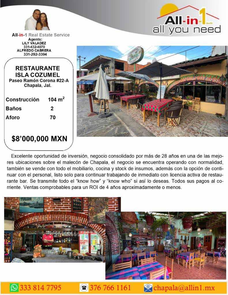 RESTAURANT COZUMEL. Tel. 376 7654606.