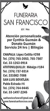 GUADALAJARA REPORTER.- 376 766-33-38 www.theguadalajarareporter. com Oficina Plaza Bugambilias Ajijic. Tel. 376 7663338.