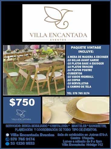 SERVIFIESTAS Y BANQUETES ITALO.- Renta de mobiliario, toldos, etc. sa lón para eventos, Guadalu pe Victoria 10 Ajijic. Tel: 376 7662221; 376 7662569; 376 766 3172; 376 7664495; maria nabrandi60@hotmail.com Cel. 3314582737; 3312555662 olatibrandi75hotmail.com www.hotelitaloAjijic.com