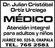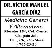 DR. JOSÉ MANUEL SÁNCHEZ GÓMEZ.- Or topédico y traumatólogo, Juá rez 560, Chapala, Jal. Tel. 376 7652277.