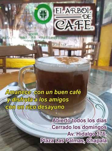 ÁRBOL DE CAFÉ.- Hidal go 236 Plaza Las Palmas, Cha pala, Jal. Tel. 376 765-39-08.