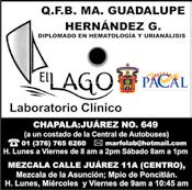 LABORATORIO DE PATOLOGÍA CLÍNICA CHA PALA.- Flavio Romero de Ve lasco 448-A, Tel. 376 7654527.