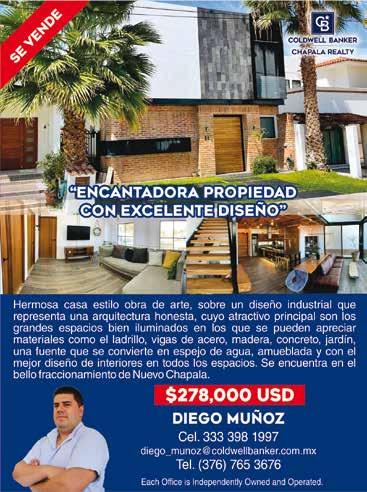 COLDWELL BANKER CHAPALA REALTY.- Hidal go 223 Chapala, 376 7652877; 376 7653676 fax. 376 7653528; chapala@chapala.com www.chapala.com