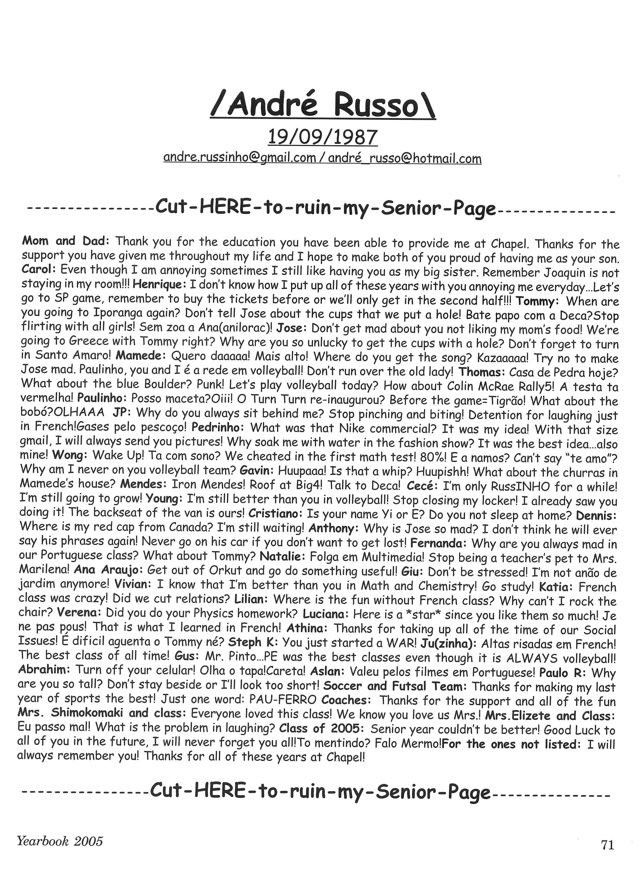Yearbook - Class of 2005 by Chapel School - Issuu