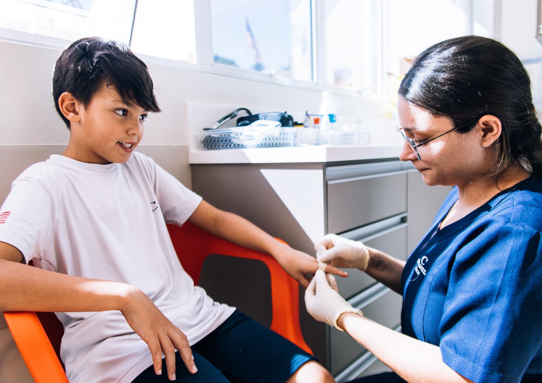 A equipe de enfermagem proporciona assistência integral a alunos, professores e colaboradores, seja ministrando medicamentos receitados para alunos em período de tratamento médico, seja atendendo queixas do dia a dia, ou ainda prestando assistência qualificada nos casos mais complexos de traumas e/ou contusões. Completa e organizada, a enfermaria dispõe de uma sala para repouso, com poltronas confortáveis para acomodar as crianças que precisarem permanecer em repouso por um determinado período. Há também uma sala para fazer curativos e administrar medicações, e ainda um outro espaço reservado para quadros de isolamentos diversos. A qualidade da enfermaria da Chapel se traduz em proporcionar um ambiente seguro para a comunidade escolar e em construir vínculos com as crianças, para que se sintam acolhidas no colégio em todas as situações.