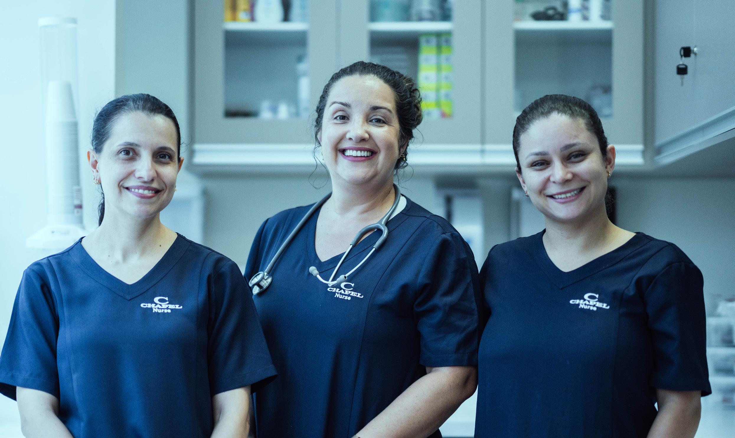 O Serviço de Saúde da Chapel conta com uma enfermaria equipada com materiais e equipamentos para atendimentos de primeiros socorros. Sua equipe é composta por três enfermeiras capazes de oferecer assistência de qualidade aos alunos e colaboradores que eventualmente apresentem algum problema de saúde ou que se acidentem no campus. Com experiência em urgência e emergência adulta e pediátrica, as enfermeiras são certificadas em cursos avançados de capacitação. Entre eles, destacam-se o Advanced Cardiovascular Life Support (ACLS), o Pediatric Advanced Life Support (PALS) e o Advanced Trauma Care for Nurses (ATCN), chancelados pela American Heart Association. Atendendo diariamente das 7h30 às 19h, a equipe de enfermagem é uma das primeiras a chegar no colégio e uma das últimas a sair, acompanhando, além do período de aulas, todos os eventos realizados ao longo do ano letivo, inclusive aos fins de semana.