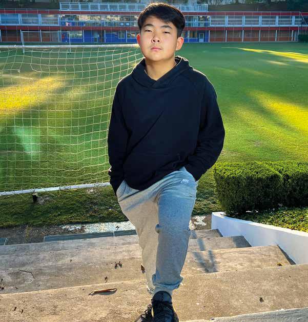 10 - No futebol de campo, Lucas Barbosa (5º ano) domina a bola observado por Jonathan Chen (5º ano).