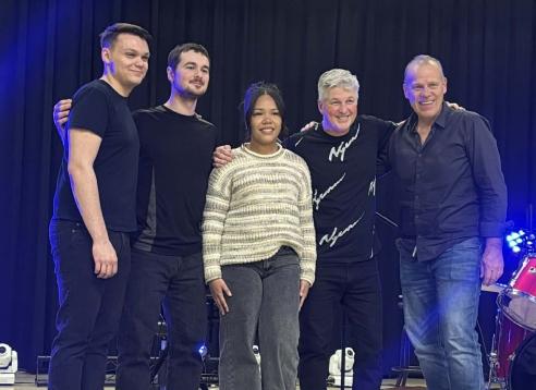 Nous avons aussi eu la chance d’accueillir une invitée spéciale de Chapleau, venue interpréter avec Brian la chanson Mon drapeau sur scène. Cette année marquant le 50e anniversaire du drapeau franco-ontarien, ce moment fut particulièrement touchant. Brian, auteur de cette chanson, a su raviver notre fierté franco-ontarienne en partageant la scène avec Celena, une jeune artiste locale.
