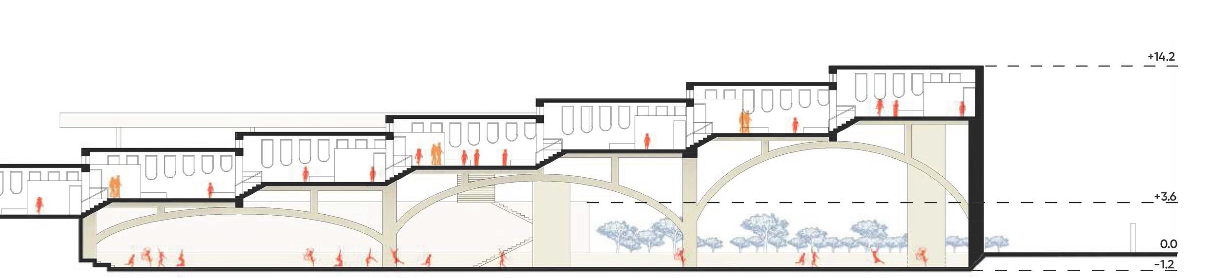 Inspired by the iconic arches of neighboring Pisa, we pay homage to their historical and cultural significance, from the Medici family’s hospital to the natural arches found in the region’s caves. In our reinterpretation, structural arches remain upright, preserving their integrity and function, while all non-structural arches are flipped, creating a bold interplay of tradition and innovation, connecting the past with contemporary design.