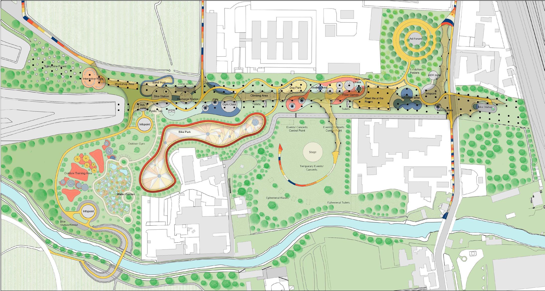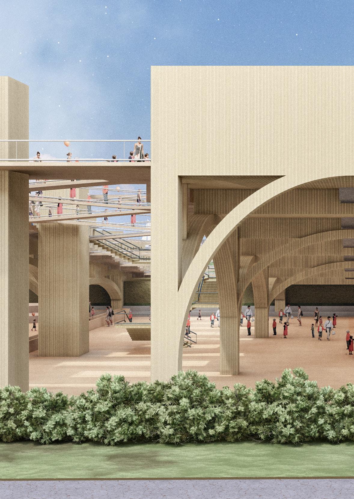 Leveraging the area’s potential, this initiative introduces a dynamic recreational oasis that bridges the park’s East and West sides by incorporating sports facilities, cultural venues, and enhanced pedestrian and cyclist pathways, the design fosters social interaction, cultural exchange, and environmental stewardship.