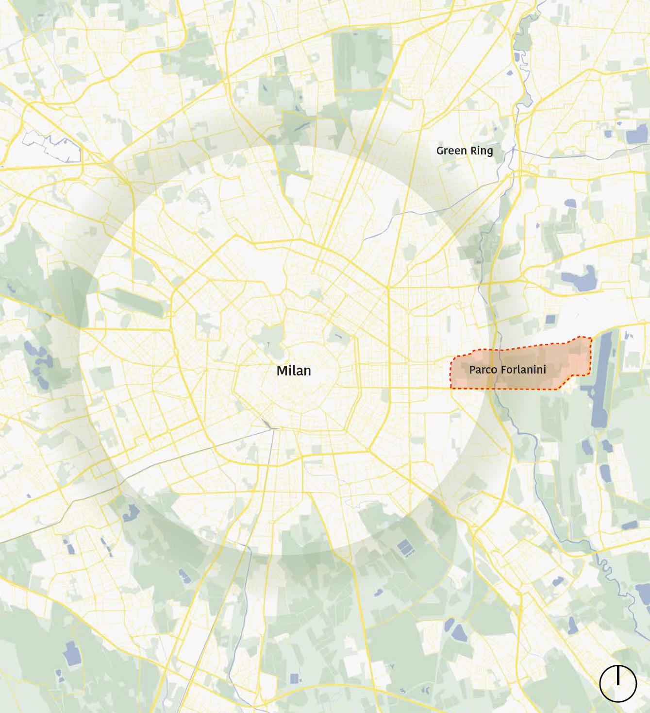 Project area (Grande Parco Forlanini) Roads network Green ring