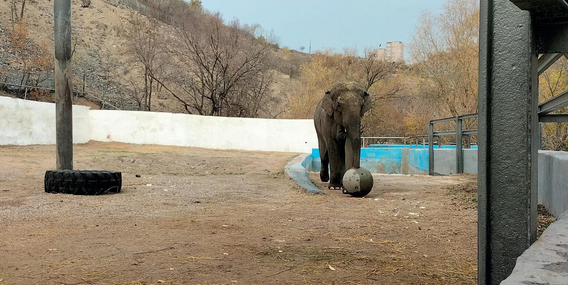 He’d been moved to Yerevan Zoo aged six in 2014; taken from his mother in another miserable zoo in Georgia and is now in his 10th year of solitary captivity. Keeping elephants in solitary captivity even contravenes the appallingly low zoo industry standards they have for these sentient creatures. To the contrary, modern science suggests