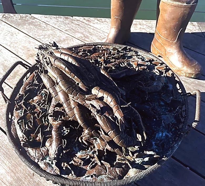Rocky Magwood said he drove by the statue around 4:30 a.m. Saturday and noticed nothing awry as he headed to his boat. At 7 a.m., however, a friend phoned to say the string of bronze shrimp dangling from the statue’s hand were missing.