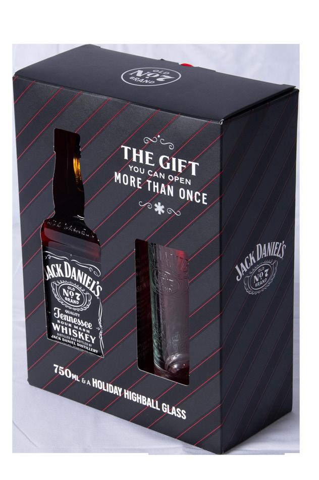 $22.99 Old No. 7 Includes collectors’s highball glass. JD7 is mellowed through sugar maple charcoal and matured in white oak barrels. Available at Burris Liquor | burrisliquors.com