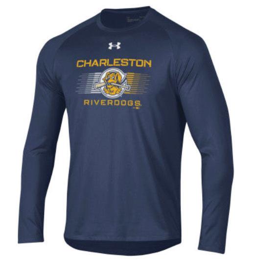 $58 This long-sleeved midnight navy Under Armour Tech Tee features the Home Cap logo. Loose fit. 100% polyester. Available at riverdogs.milbstore.com