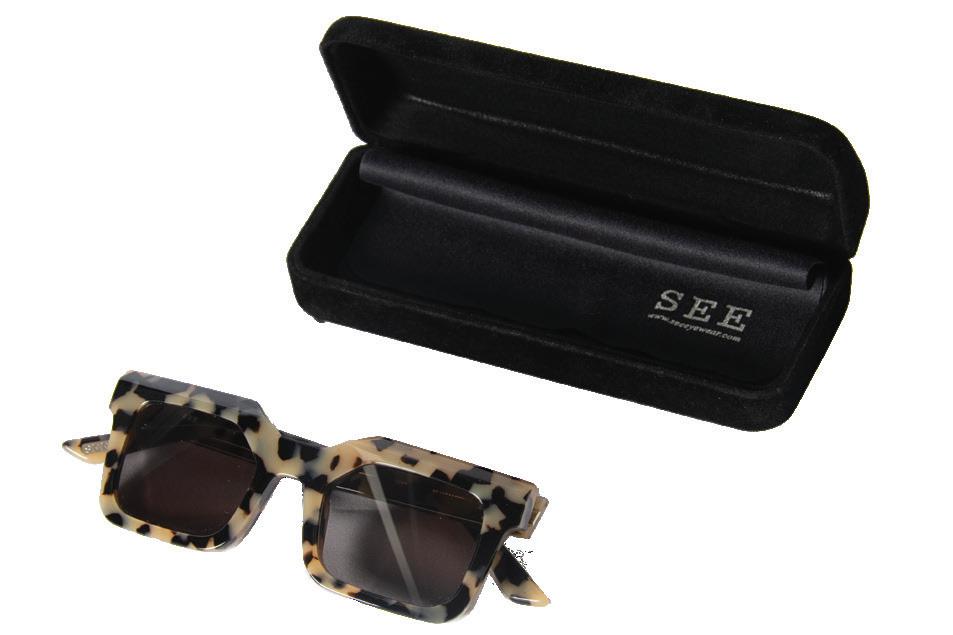 $149 Gender neutral, sleek, acetate sun frame that can be fitted with prescription and/or polarized lenses if needed. (Other colors available) Available at SEE seeeyewear.com