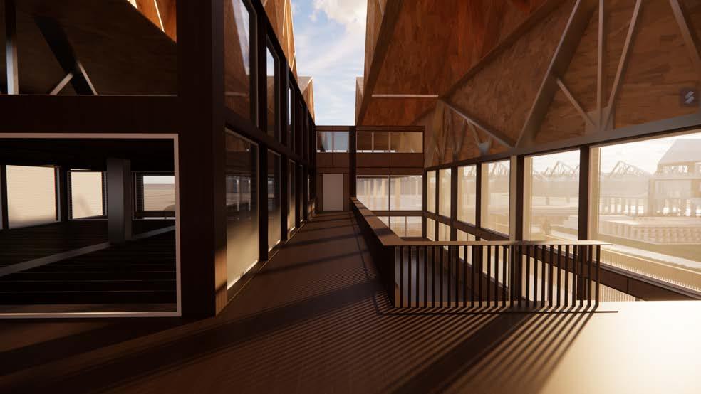 My starting point is to design the empty spaces while keeping the occupied ones as they are. Building on the existing shed, the design will include a timber structure that elegantly rests atop the current steel framework. This addition is designed to blend sustainability with industrial robustness, creating a space that is both visually appealing and functional.