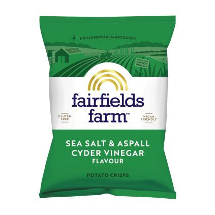 Hand cooked, Skin-on Potato Crisps with a sea salt and aspall cyder vinegar seasoning.