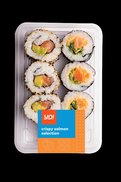 3 salmon & avocado rolls coated with sesame, 3 spicy salmon rolls with lettuce & spring onion, with kabayaki sauce & crispy onions.
