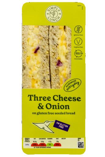 Red, white & mature grated Cheddar cheese in a red onion mayonnaise on seeded gluten free bread.