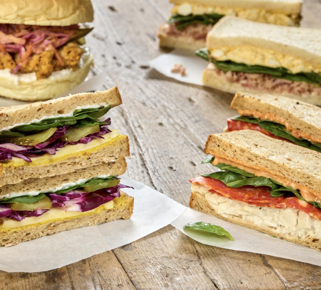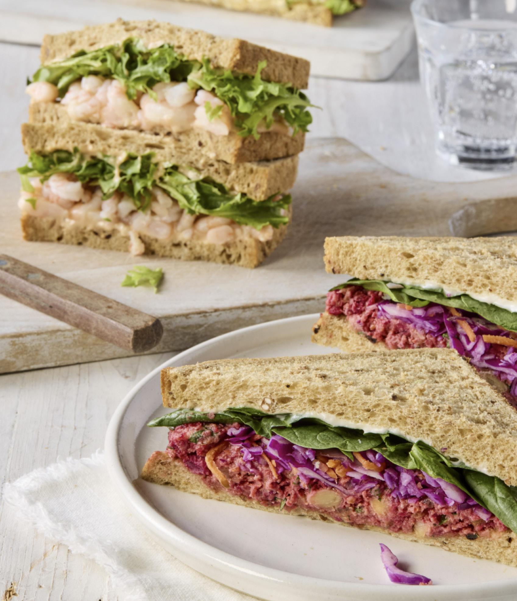 Beetroot Falafel & Houmous and Very Cheezy Vegan Ploughman's Sandwich selection.