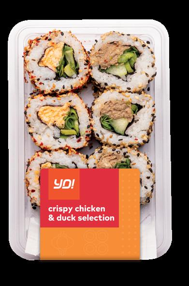 3 spicy chicken & spring onion rolls coated with spicy sesame, 3 duck, cucumber & spring onion rolls coated with sesame, with sweet teriyaki sauce & crispy onions.