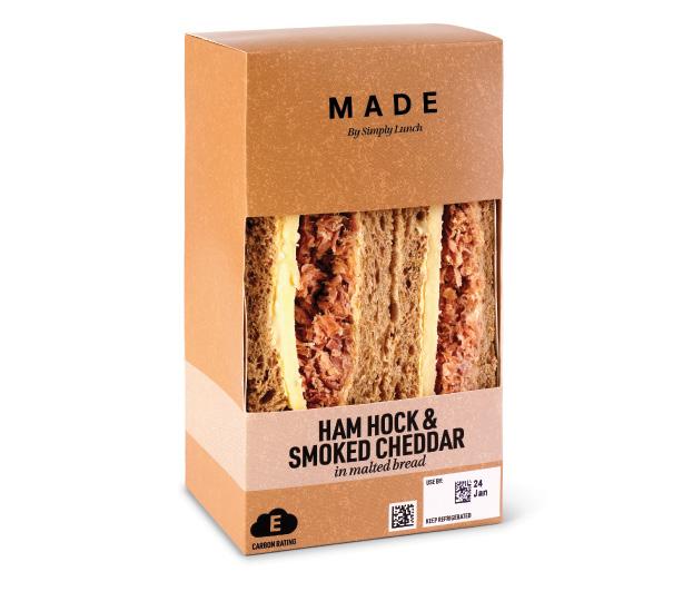 Barber's West Country mature Cheddar, cream cheese & smoked ham with added water on malted bread.